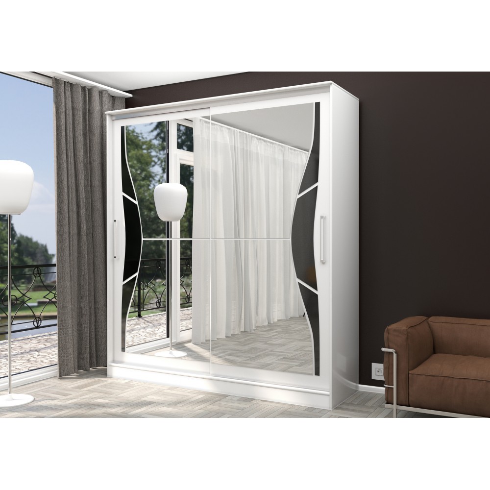 Шкаф-купе "Бабочка" 1700 белый/стекло черное