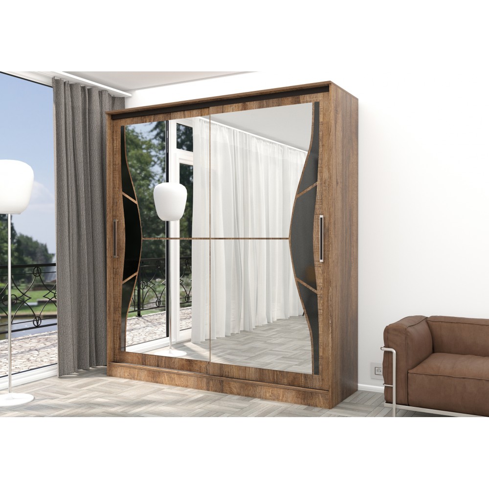 Шкаф-купе "Бабочка" 1700 дуб текстурный/стекло черное