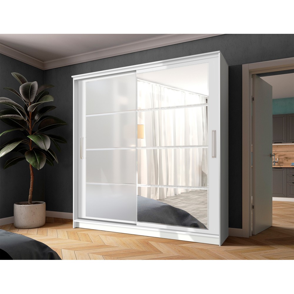 Шкаф-купе "Дейра-2" 2000 белый/лакобель белая/зеркало