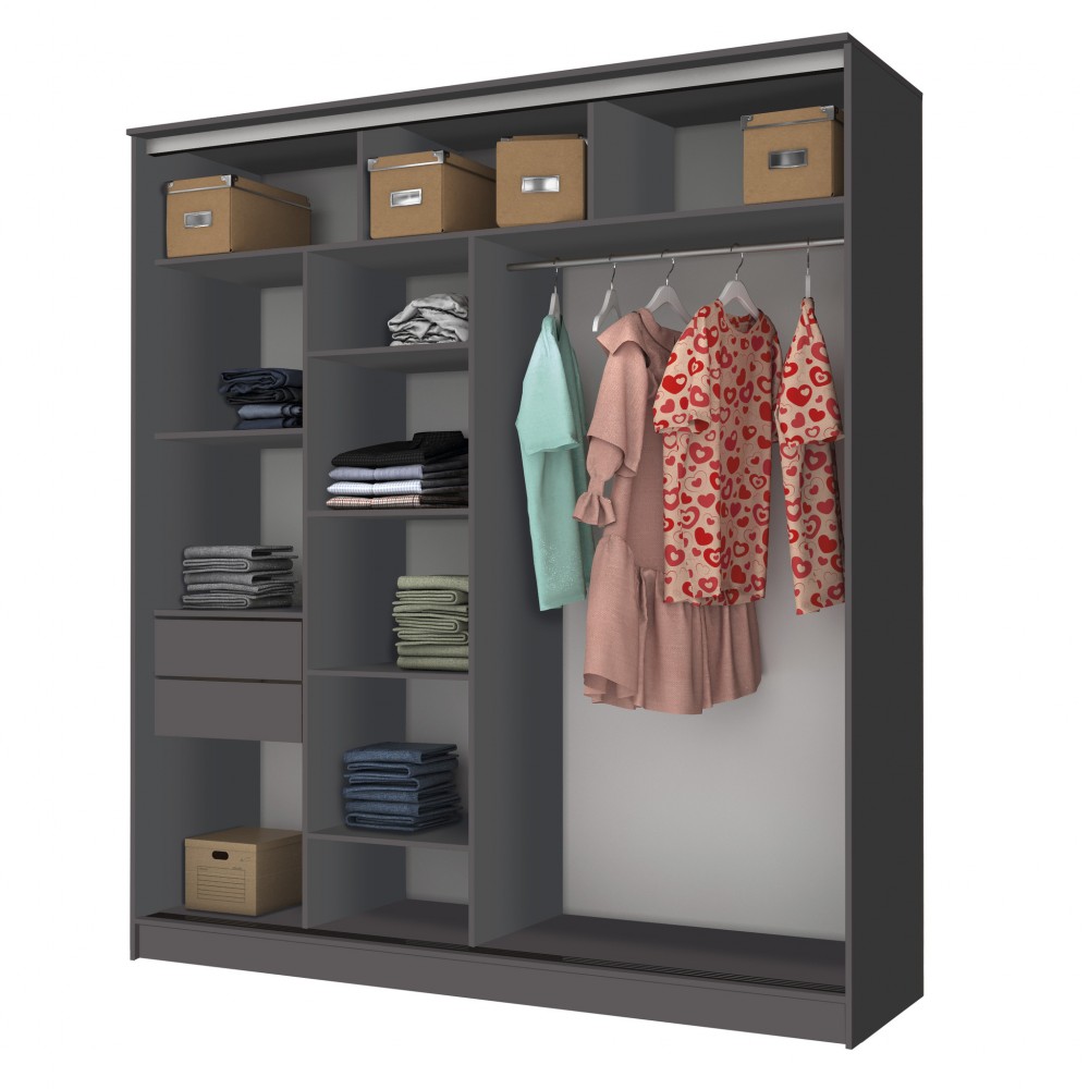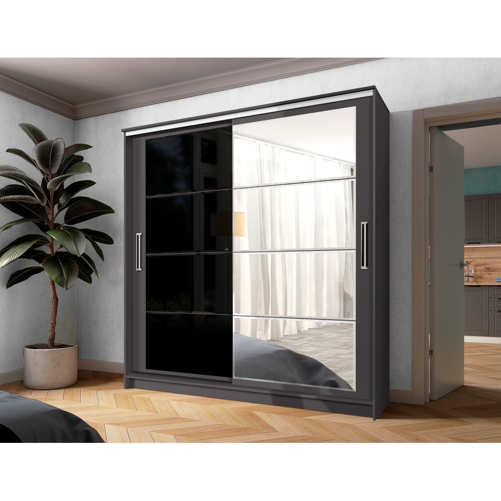 Шкаф-купе "Дейра-2" 2000 графит/лакобель черная/зеркало